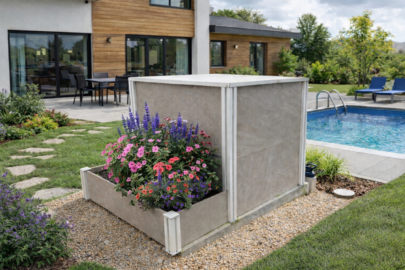 Une réponse idéale pour intégrer harmonieusement un local technique de piscine dans n’importe quel jardin — sans compromis entre efficacité, esthétique et modularité.